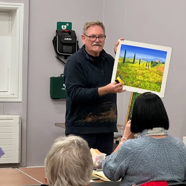 What an inspiring evening with Michelle Scragg! Exploring bold colours in abstract composition was truly eye-opening. Michelle's passion for colour is infectious and her expert advice was invaluable. Thank you, Michelle!