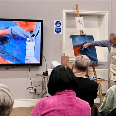 What a great paint along session we had last night with Nick John Rees, our members really enjoyed painting this seascape with lighthouse, a fun interactive evening with excellent tuition from Nick as always.