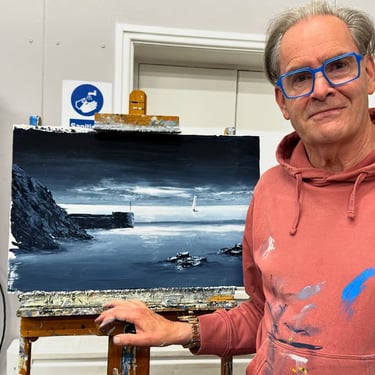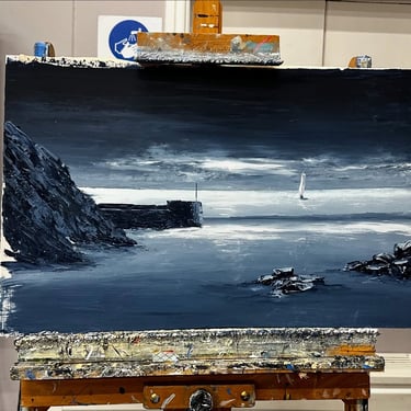 Thank you Nick John Rees - Marine Artist for another awesome demonstration this evening, we put you on the spot requesting both a moonlight scene and a harbour wall with rocks and what a fantastic result in such a short time.