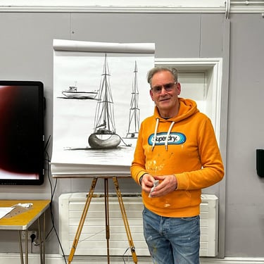 Many thanks to marine Artist @nick_john_rees for this evenings excellent Demo/ workshop showing us his techniques on how to draw boats . It was very well received and your tips on how to start from the basics of shapes and then expand on shading and all the extra elements